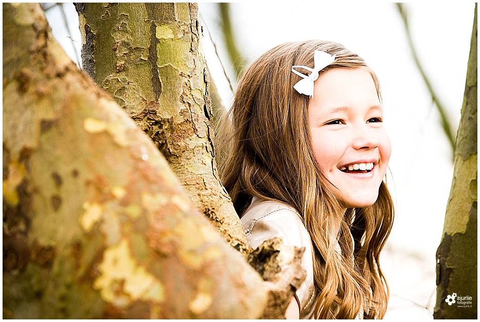 Vooral vanmiddag bij ondergaande zon was het schittend om foto's te maken van Anouk. Anouk vond het leuk om te poseren, te huppelen en in bomen te klimmen, met deze foto's als resultaat.